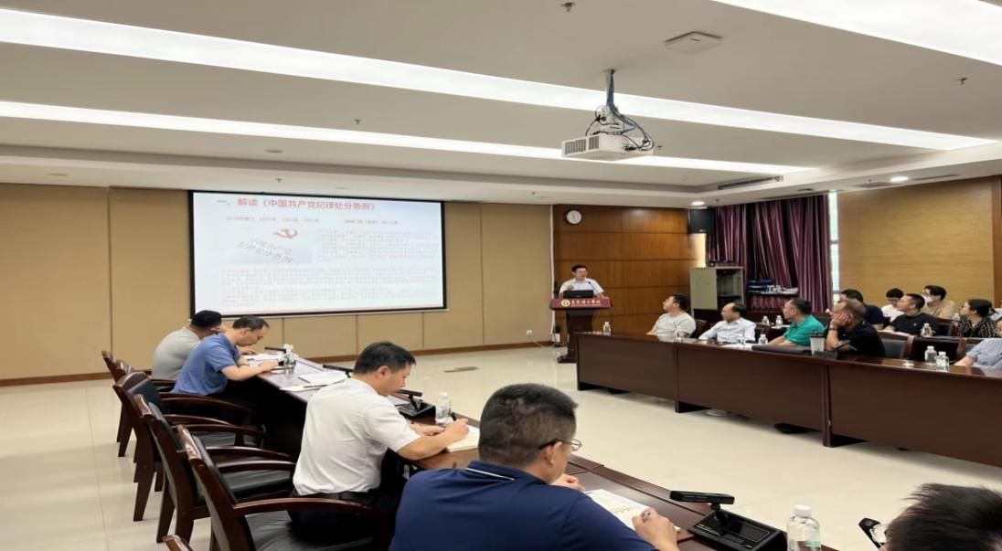 谢霄男以“弘德育人,廉洁从教”为题,从解读《中国共产党纪律处分条例》、警醒高校常见的七大腐败问题、分析警示教育案例和增强纪法意识,筑牢拒腐防变防线等方面做了生动鲜活、引人深思的廉政专题辅导报告。
