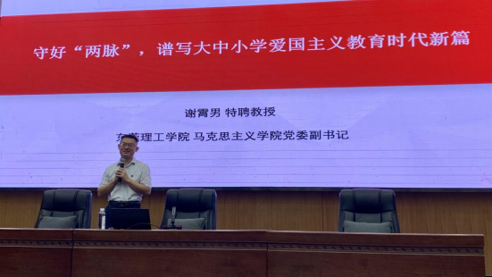球王会党委副书记谢霄男在主题研修活动中作题为《守好“两脉”,谱写大中小学爱国主义教育时代新篇》的专题报告。谢霄男首先介绍了大中小学思政课一体化的由来,然后从守好中国人的“根脉”的重要性、守好中国人的“魂脉”的必要性、守好“两脉”要厚植爱党爱国情怀、守好“两脉”要坚持爱国、爱党、爱社会主义相统一等四个维度对大中小学爱国主义教育一体化的重要性与方法路径展开了深入讲解。