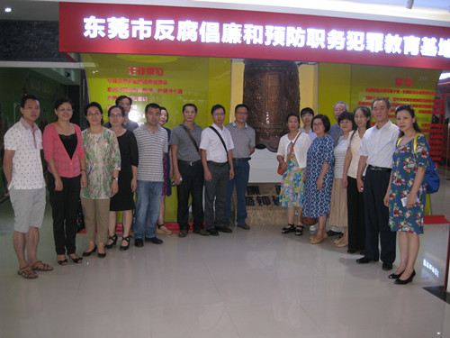 昨天下午,丽日蓝天,作为纪律教育活动月的一项安排,思政部教职工一行23人到东莞市委党校,参观市委和检察院举办的反腐倡廉教育展览。该展览声像结合,图文并茂,生动地展示了腐败分子的贪腐行为、受到的党纪国法处理、以及在狱中的深刻忤悔。参观快结束时,在巨大的警示钟前,支部书记老张敲了一下警钟,半开玩笑半认真地对部主任说:老吕啊,要警钟长鸣啊。老吕严肃地说,是啊,希望我们共勉,希望大家共勉。