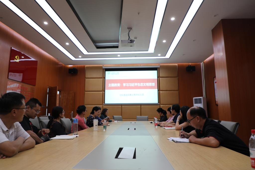 2019年10月17日下午,根据学校党委和学院党委主题教育工作安排,球王会官网基础和概论教师党支部在马院会议室集中学习了习近平总书记的“绿水青山就是金山银山”理论,支部书记毛安翼以《学习习近平生态文明思想——以两山理论为线索》为题,为支部党员讲授专题党课。