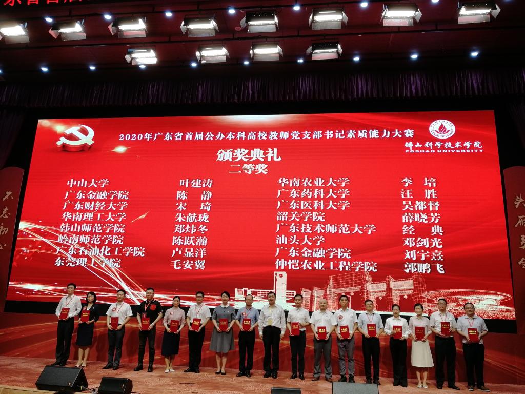 9月26日,由中共广东省委教育工委主办的广东省首届公办高校(本科)教师党支部书记素质能力大赛在佛山科学技术学院仙溪校区圆满落幕。我校球王会官网教师党支部书记毛安翼与全省39所公办高校(本科)参赛选手相互比拼,经过4个月的激烈角逐,喜获二等奖。