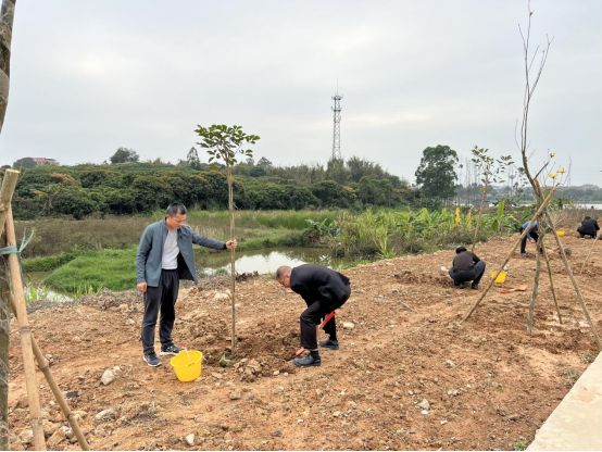 随后,教师们来到企石镇清湖村指定的绿化区域,开始了一场生动活泼的绿化实践活动。大家分工合作,有的挖坑培土,有的搬运树苗,有的浇水施肥,每个人都全身心投入到绿化工作中。在大家的共同努力下,一片片新绿在土地上生根发芽,为东莞乡村增添了一抹抹生机活力。
