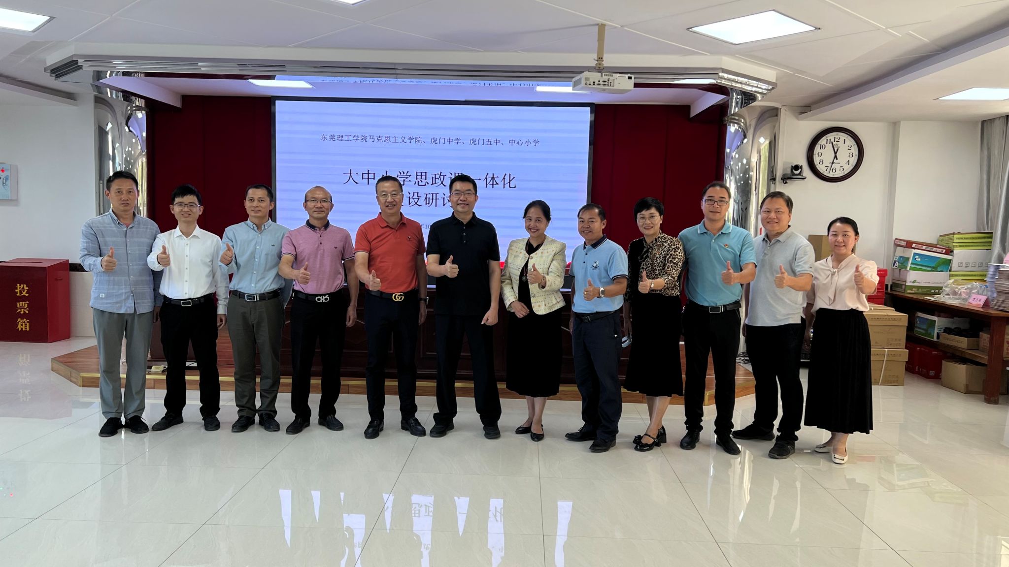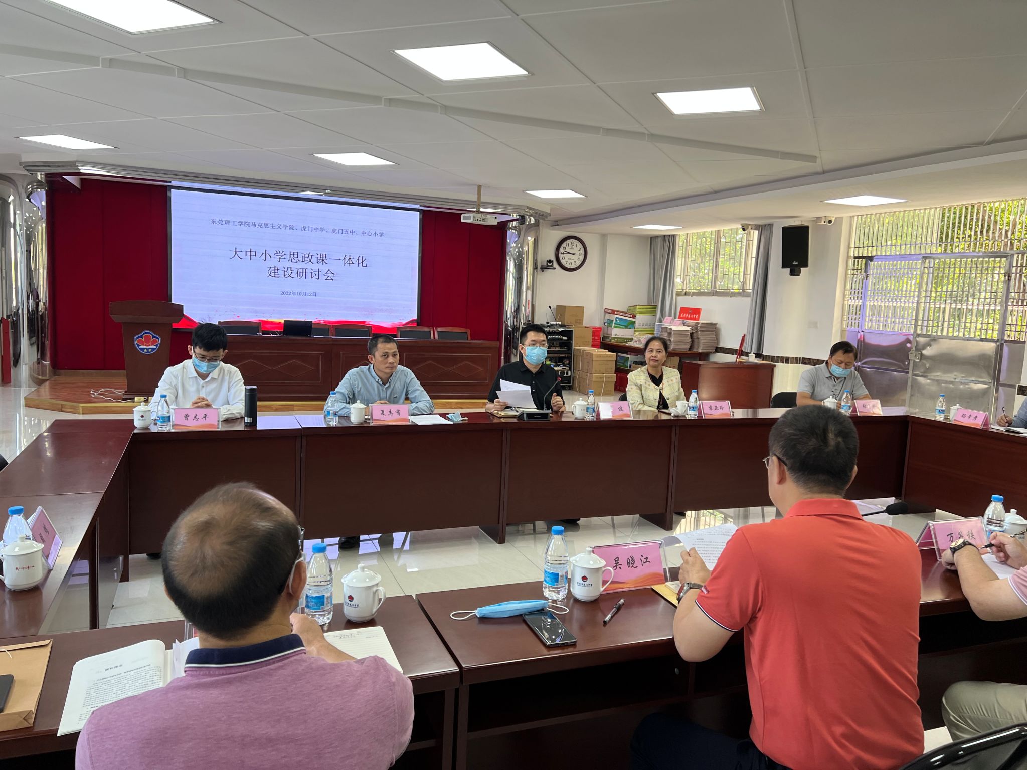为充分发挥思政课在落实立德树人根本任务中的关键课程作用,推动大中小学思政课一体化建设,10月12日上午,球王会官网党委书记、执行院长刘健一行5人来到虎门中学,与镇教育系统党委书记万子秩、教育管理中心班子成员吴晓江以及虎门中学校长胡毅超、虎门五中校长王学文、虎门中心小学校长杨碧辉共同召开大中小学思政课一体化建设研讨会,就强化协调联动、统筹推进大中小学思政课一体化建设进行座谈。学校心理健康教育与咨询中心主任苏亚玲、马院纲要教研室主任夏志有等人参加了会议。