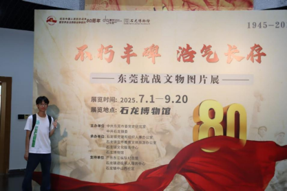 第一分队于下午4点到达石龙博物馆。在展览现场,调研团成员跟随讲解员的脚步,深入了解了东莞地区抗战时期的珍贵文物与历史图片。展览通过实物展示、图文解说和场景复原等形式,生动再现了东莞军民在抗日战争中的英勇事迹。从东江纵队的战斗历程到民众的抗日救亡运动,每一件文物背后都承载着厚重的历史记忆,传递着不屈的民族精神。