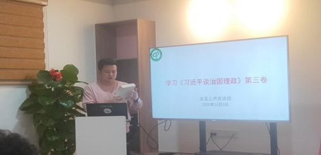 为进一步深入学习贯彻习近平新时代中国特色社会主义思想,提升莞工学子的理论修养和政治素养,12月3日下午,球王会官网求是之声宣讲团陈晓展同学在莞馨社区活动室向入党积极分子、预备党员宣讲《习近平谈治国理政》第三卷。