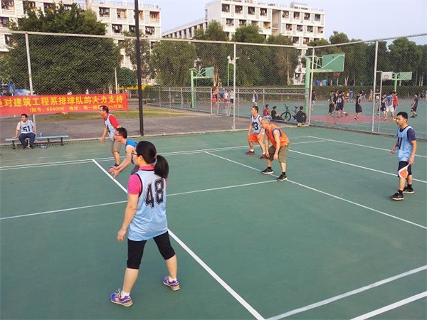 4月27日下午,我部排球队在小组赛中首遇建筑系代表队。双方实力接近,阵容齐整。我部吕有云主任,银锋副主任都亲自上阵,唯一的女队员黄海宇老师大学时期曾经是校排球队队员,有良好的基本功和比赛技能,表现精彩。其他队员也团结协作,奋力拼搏,表现可圈可点。经奋力苦战,我部以2:0的战绩获胜,进入八强。下一场比赛将遭遇校机关代表队。虽然和强队相比,我部排球队的实力可能会有差距,但精神风貌展现了思政人的良好风采。我部同事欣然作七律一首,为我部排球比赛加油助威: