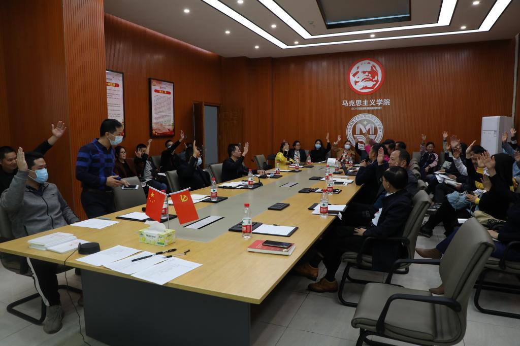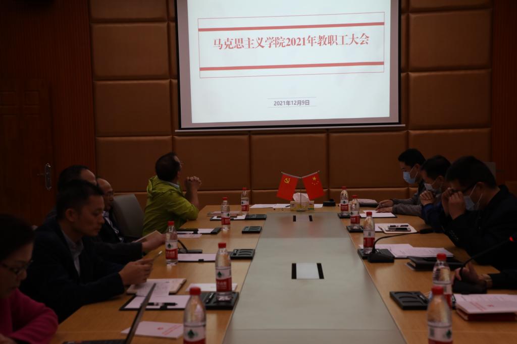 根据议程安排,会议首先由学院党委书记、执行院长刘健作2021年学院工作报告。刘健从七个方面对一年来的工作做了总结:一是坚持党建引领,高标准推进政治建设;二是坚持改革创新,高质量建强思政课;三是注重队伍建设,高强度推进师资引育工作;四是抓实学科建设,高要求推进学科实力提升;五是发挥专业作用,高效能推进社会服务工作;六是落实疫情防控,统筹各项工作安排;七是提出了存在的问题和提升路径。刘健围绕党建铸魂工程、教学质量工程、金课强院工程和顶天立地工程四个方面对2022年度工作作了规划。
